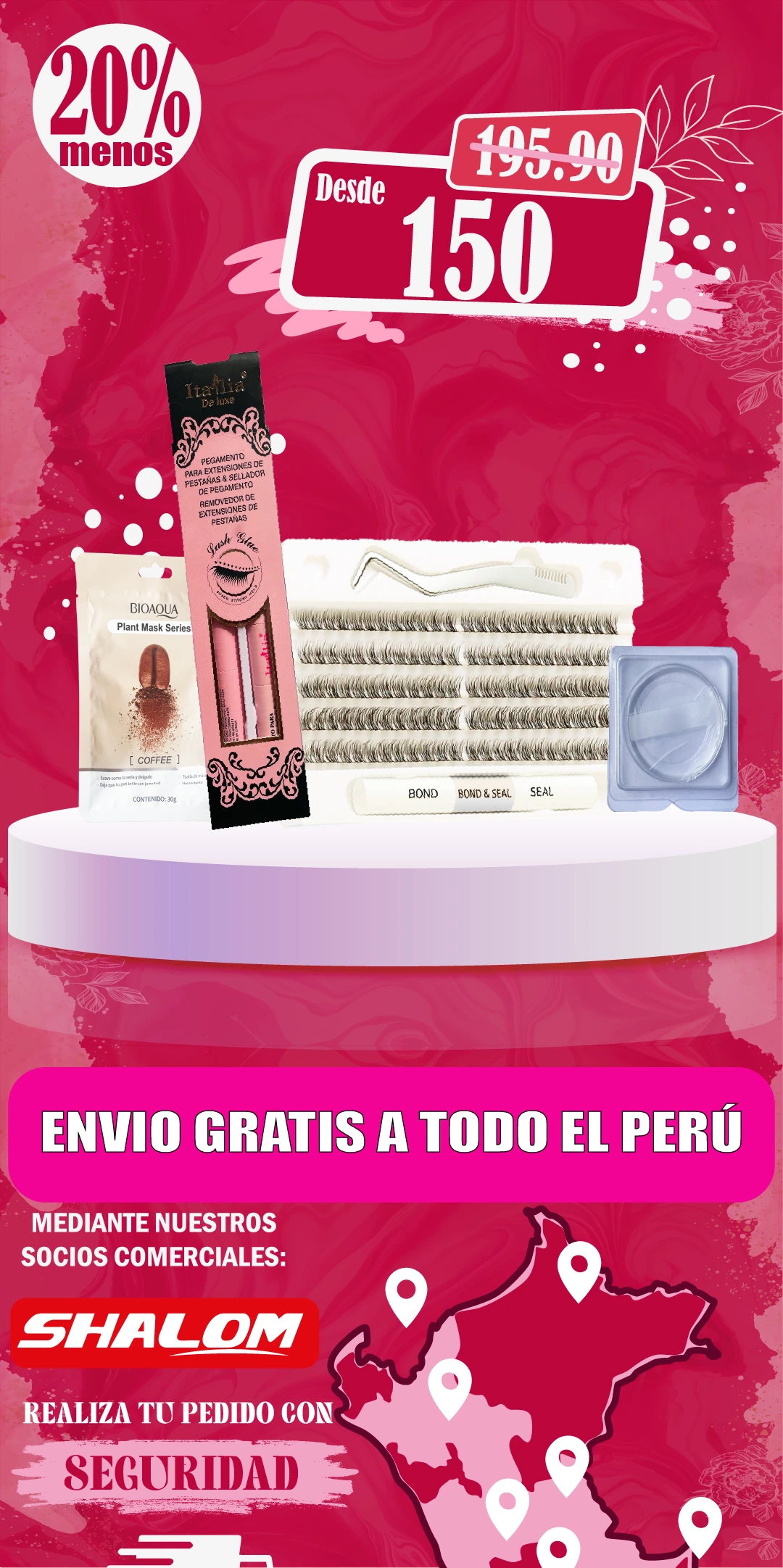Oferta Kit de pestañas todo en 1 + pegamento/remover extra + parche microagoujas + mascarilla facial por 145 soles